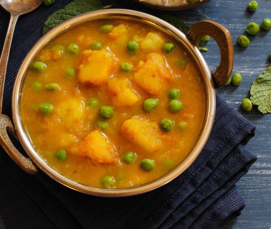 Potatoes and peas cooked with onion, tomatoes and aromatic spices (VEGAN)