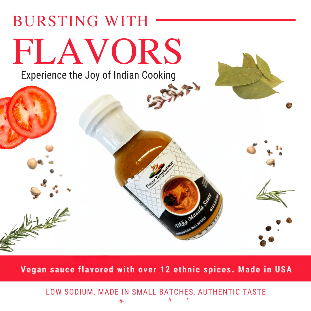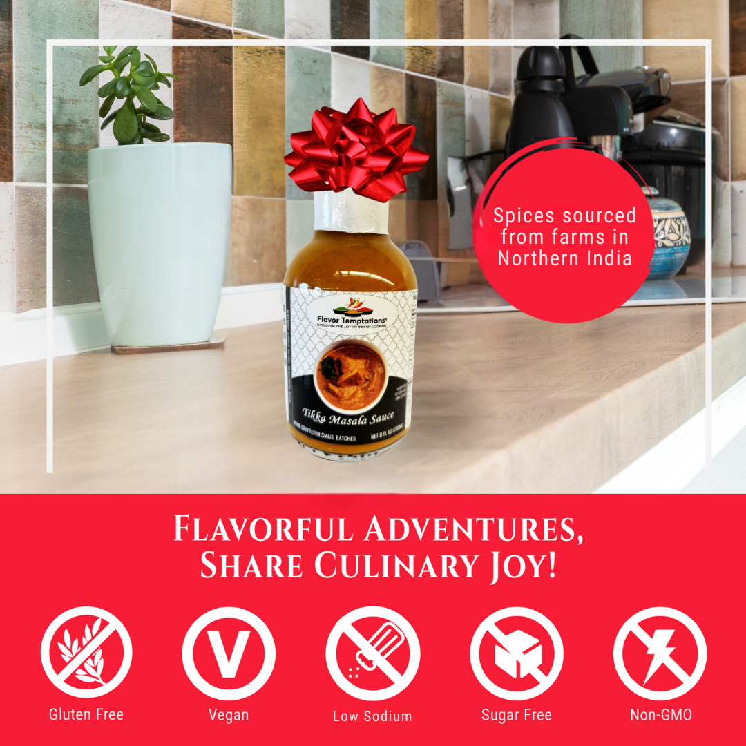 Make quick, flavorful Tikka Masala with our all-natural, gluten-free curry sauce made from organic Indian spices. This low-sodium, vegan sauce is crafted in small batches in the USA.