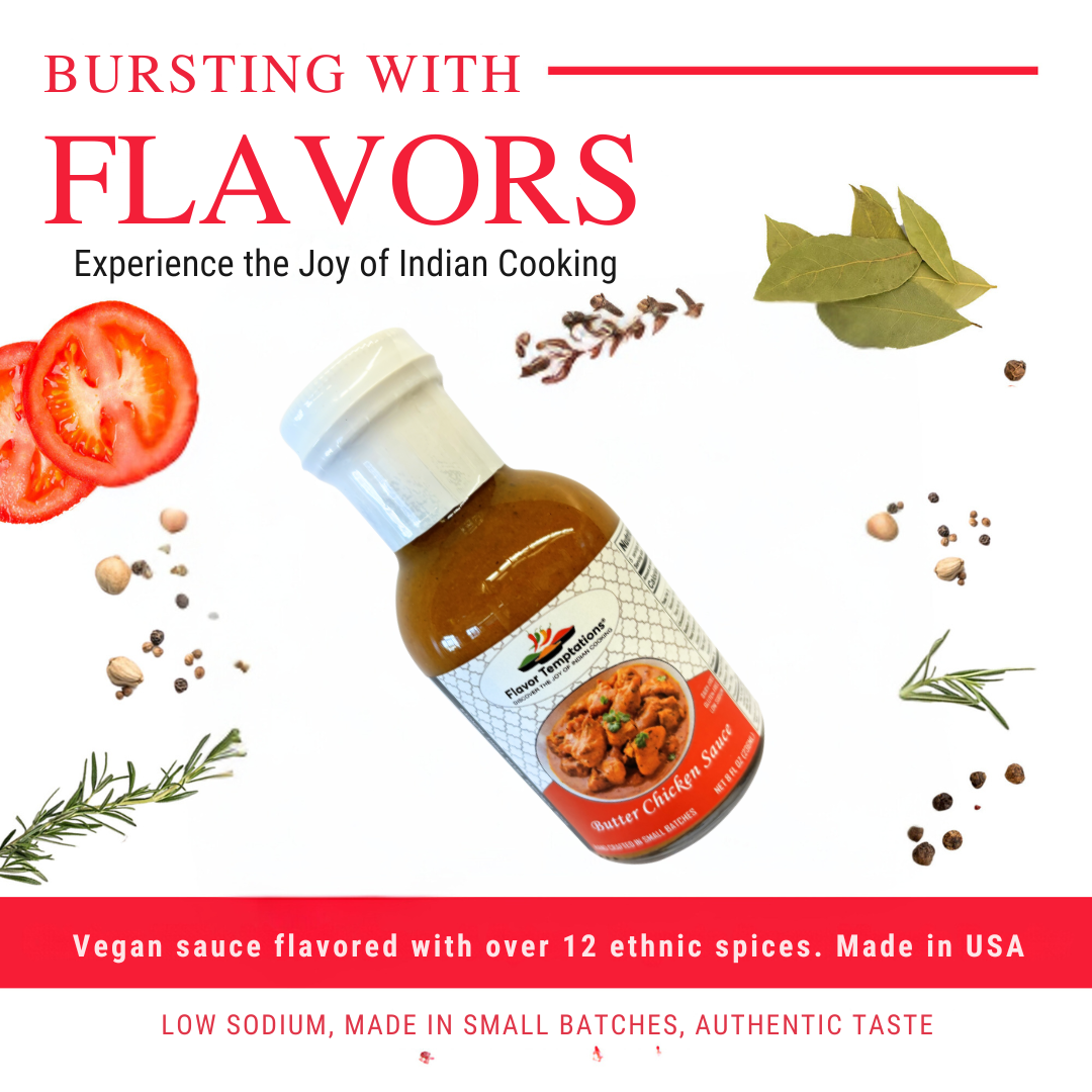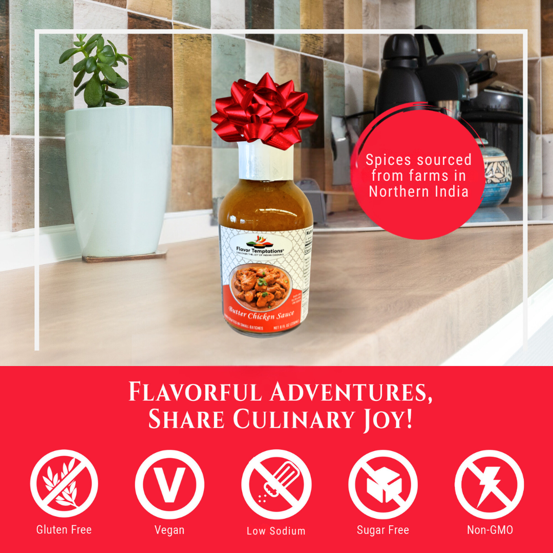 Enjoy authentic Butter Chicken with our premium curry sauce, made with all-natural ingredients and organic spices. This vegan, gluten-free, low-sodium sauce is handcrafted in small batches in Wisconsin, USA.