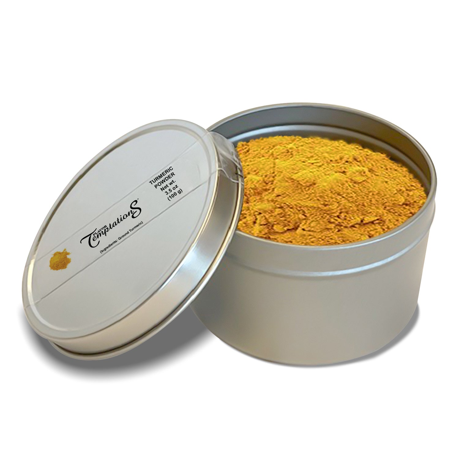 - 1 re-useable tin of 100g organic turmeric powder that can be used to make many Indian dishes