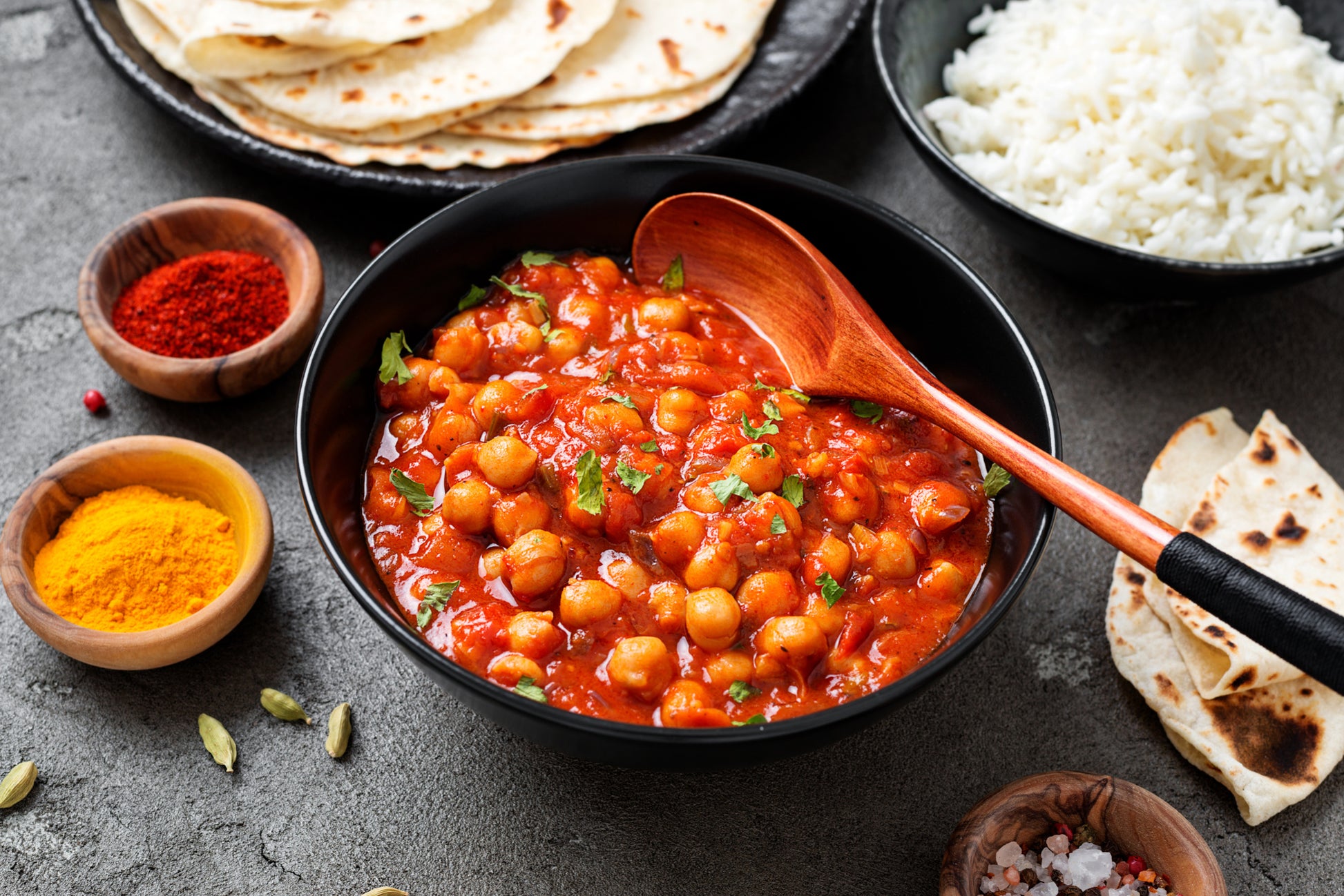 - 1 Chana Masala spice mix packet with pre-measured organic spice ingredients to make vegan chana masala from scratch